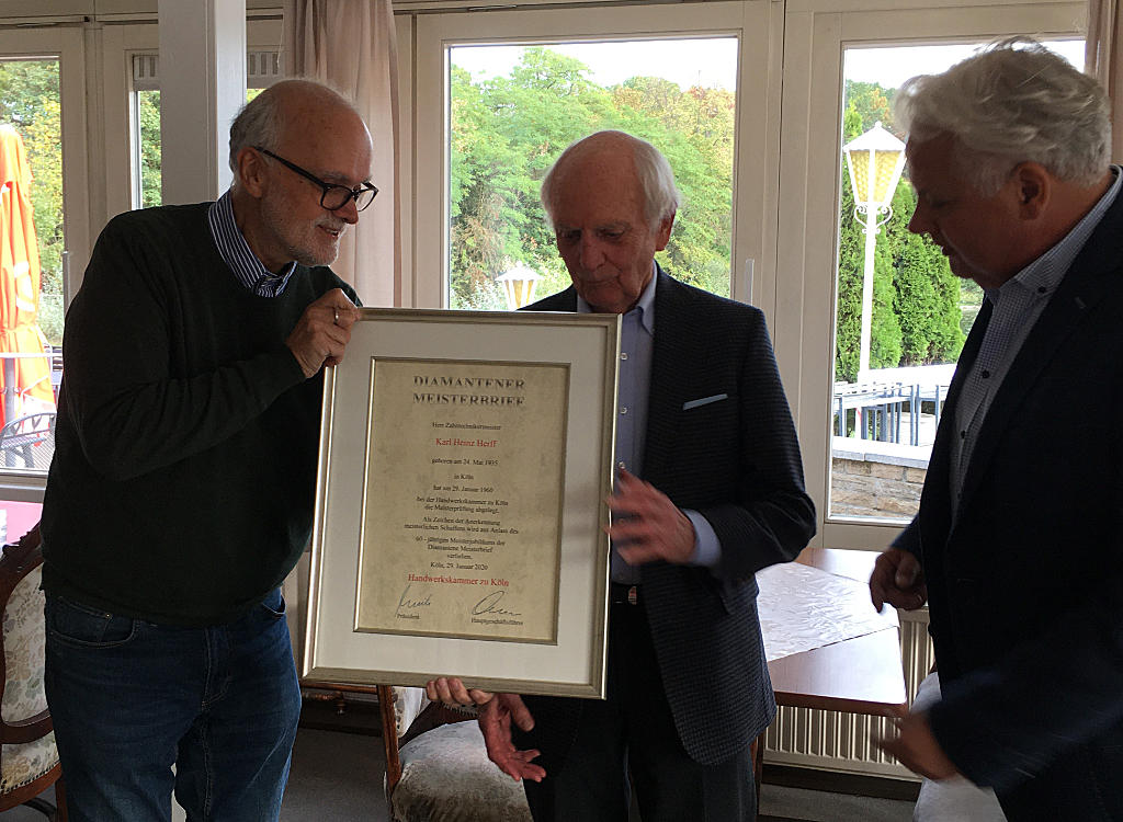 Seit vielen Jahren überreicht die Innung Jubiläums-Urkunden – Goldene Meisterbriefe (50 Jahre nach Bestehen der Meisterprüfung) und Diamantene Meisterbriefe (60 Jahre nach Bestehen der Meisterprüfung.